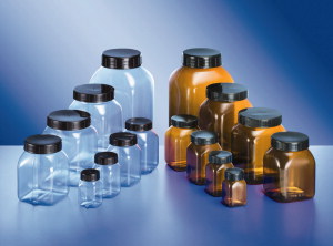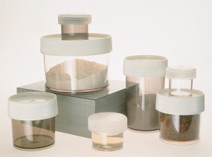 Burkas ar platu kaklu no dažādiem materiāliem, (polycarbonate, grey polycarbonate, polynethylpentene, polypropylene), neaizskrūvējošais vāks, glabāšanai, dažādi izmēri, autoklavētas pie 121°C